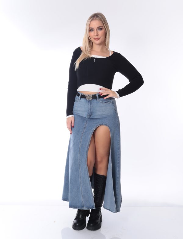 Long Denim Skirt with Slit
