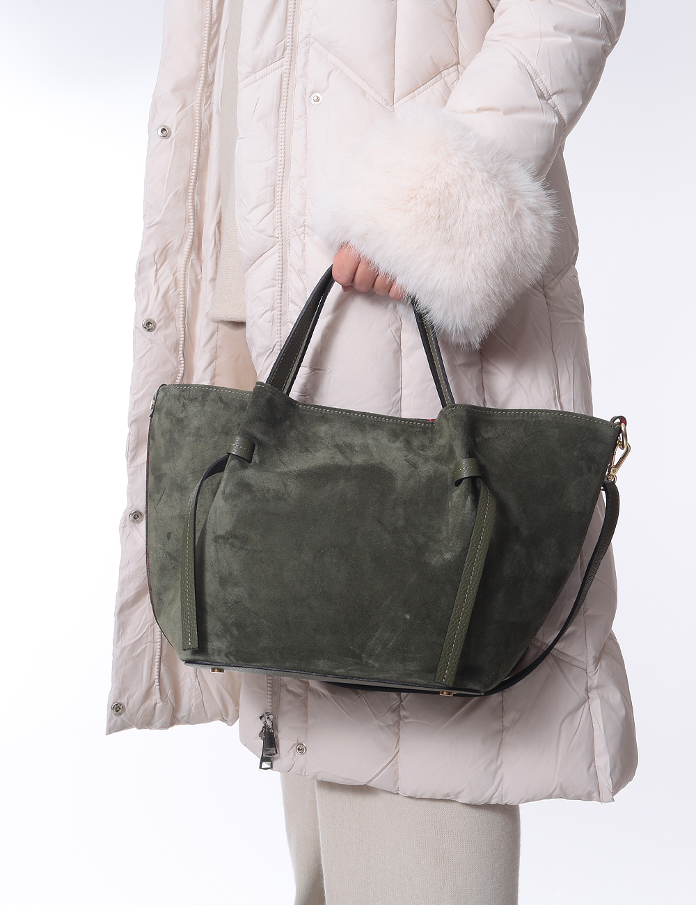 A spacious leather tote with a soft suede finish, long structured handles and a clean silhouette. Designed to hold everything you need without losing its shape. Wear it on the shoulder or crossbody using the detachable strap.