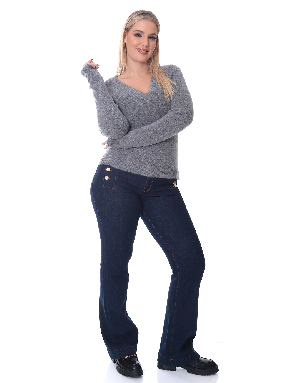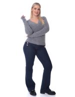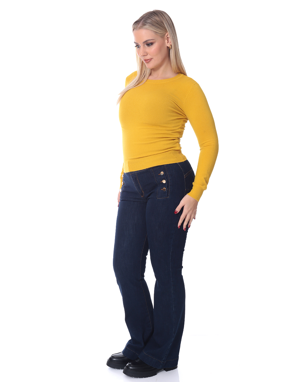 Jeans Elastic Bell-bottoms with zipper and Gold Buttons