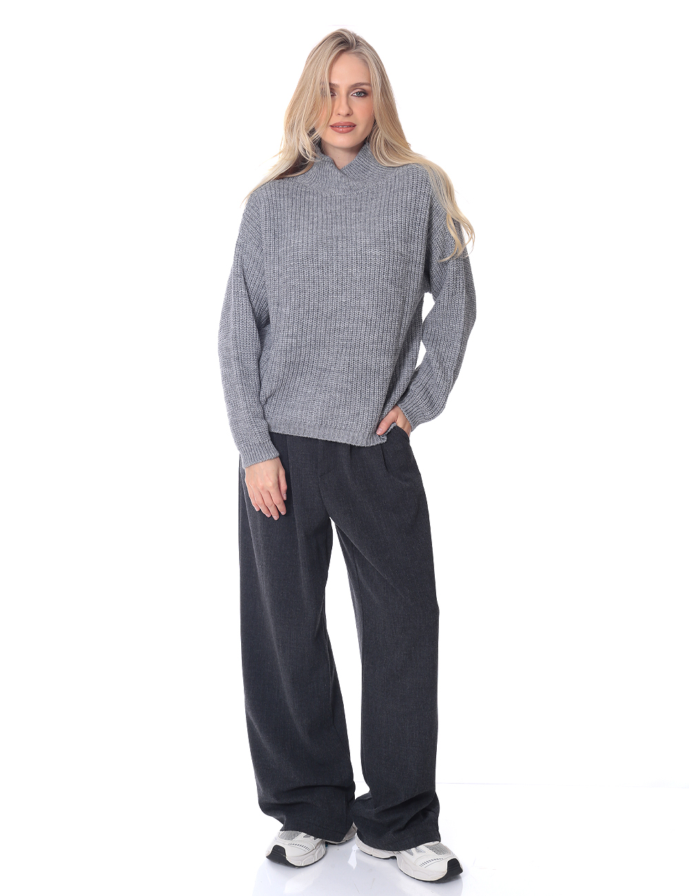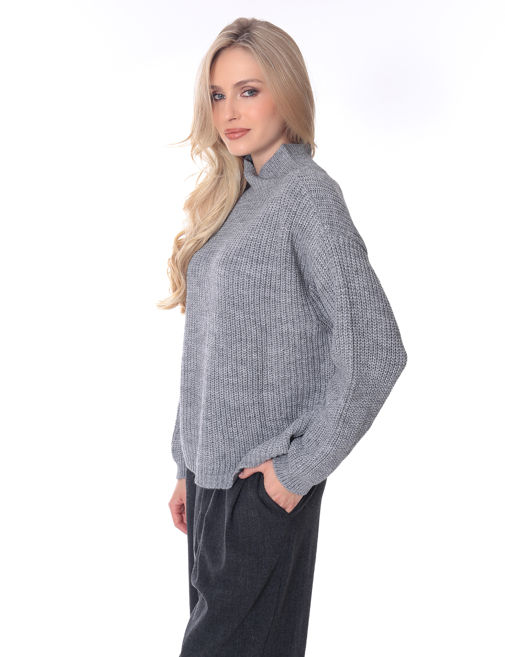 Knitted turtleneck sweater with a soft texture and relaxed fit. Features long sleeves and ribbed edges for comfortable wear. Made from a rich yarn blend of acrylic, wool, viscose, and alpaca for warmth and refined style.