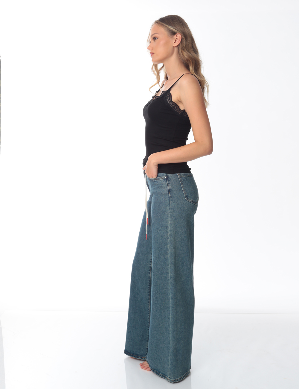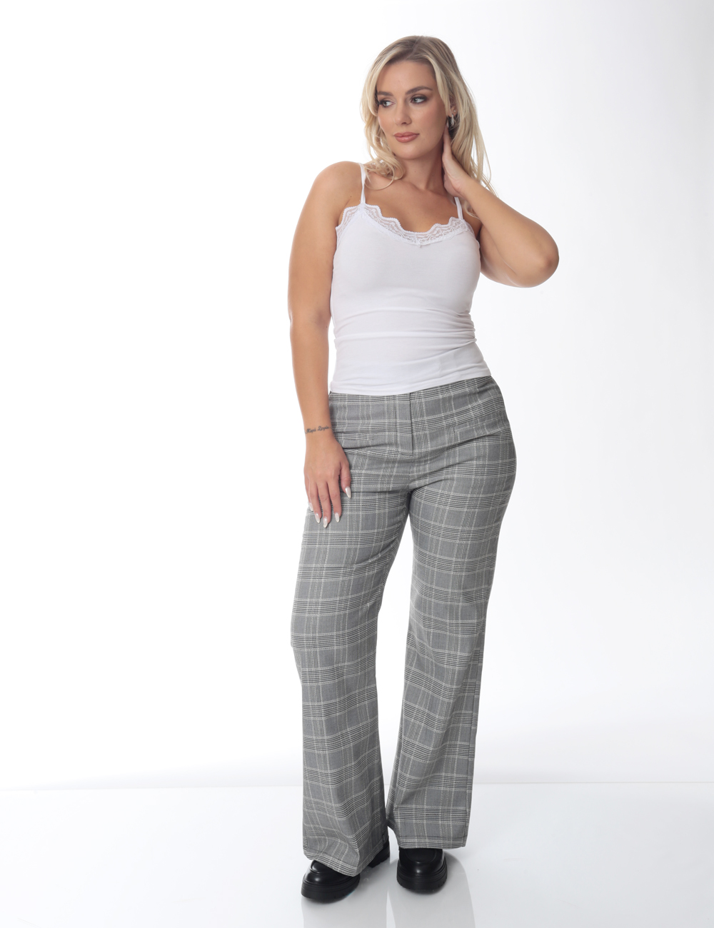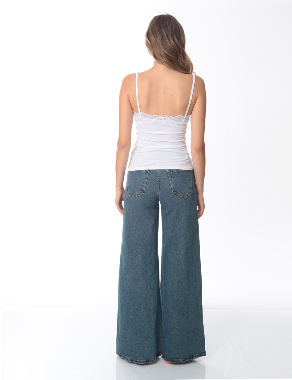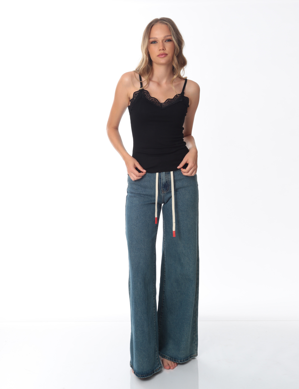 Cami top with thin straps, slim fit and lace detail on the neckline.