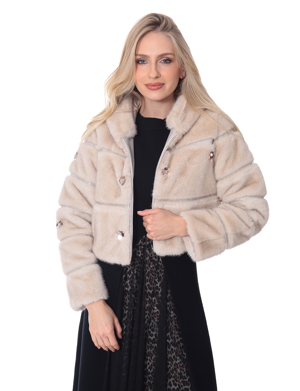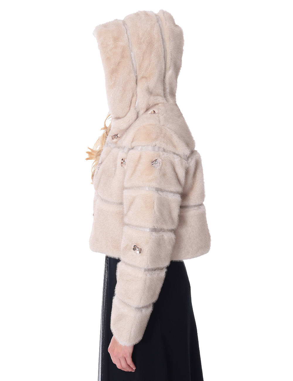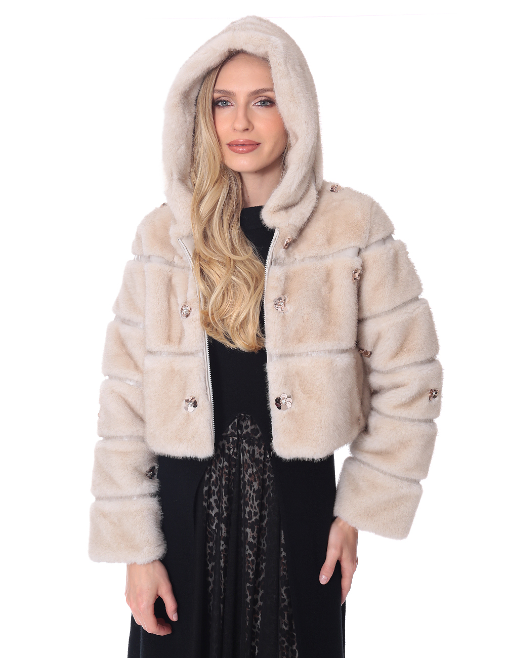 Γουνάκι fake Κοντό με Κουκούλα και Φερμουάρ