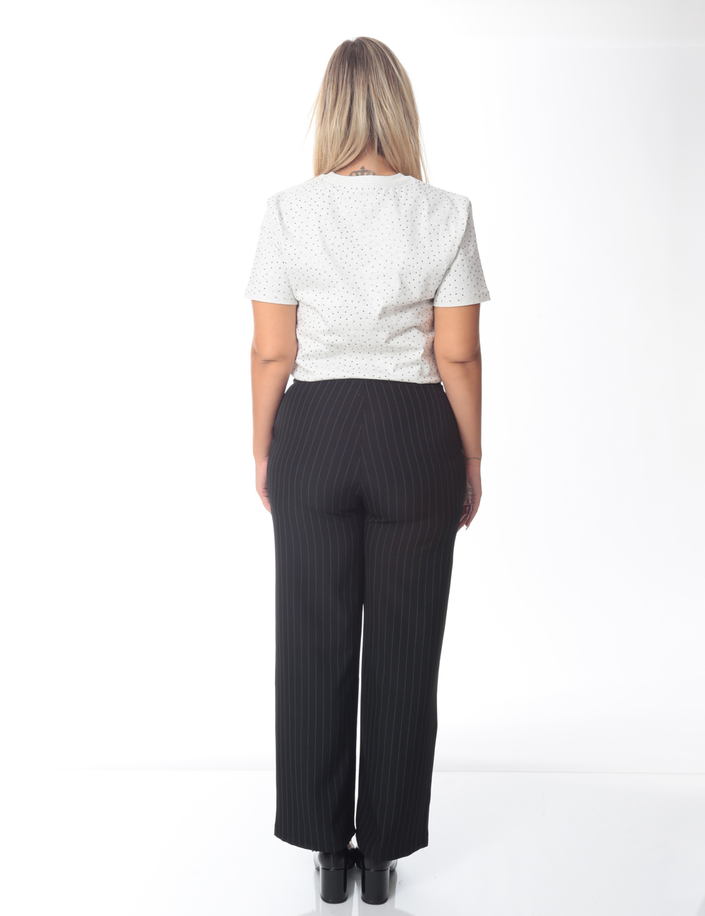Το παντελόνι έχει πιέτες, λάστιχο στην μέση και τσέπες.