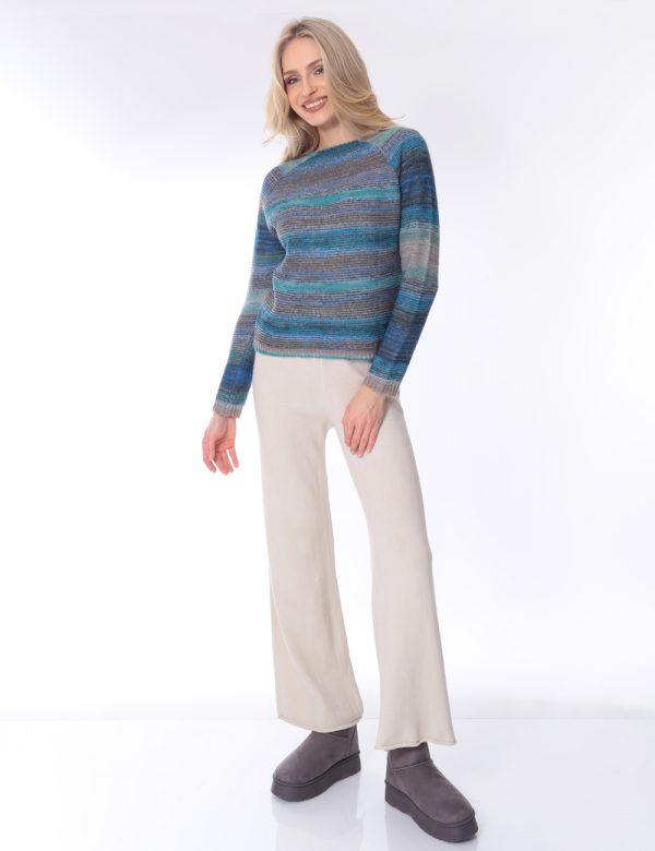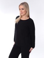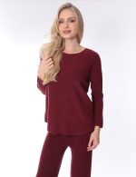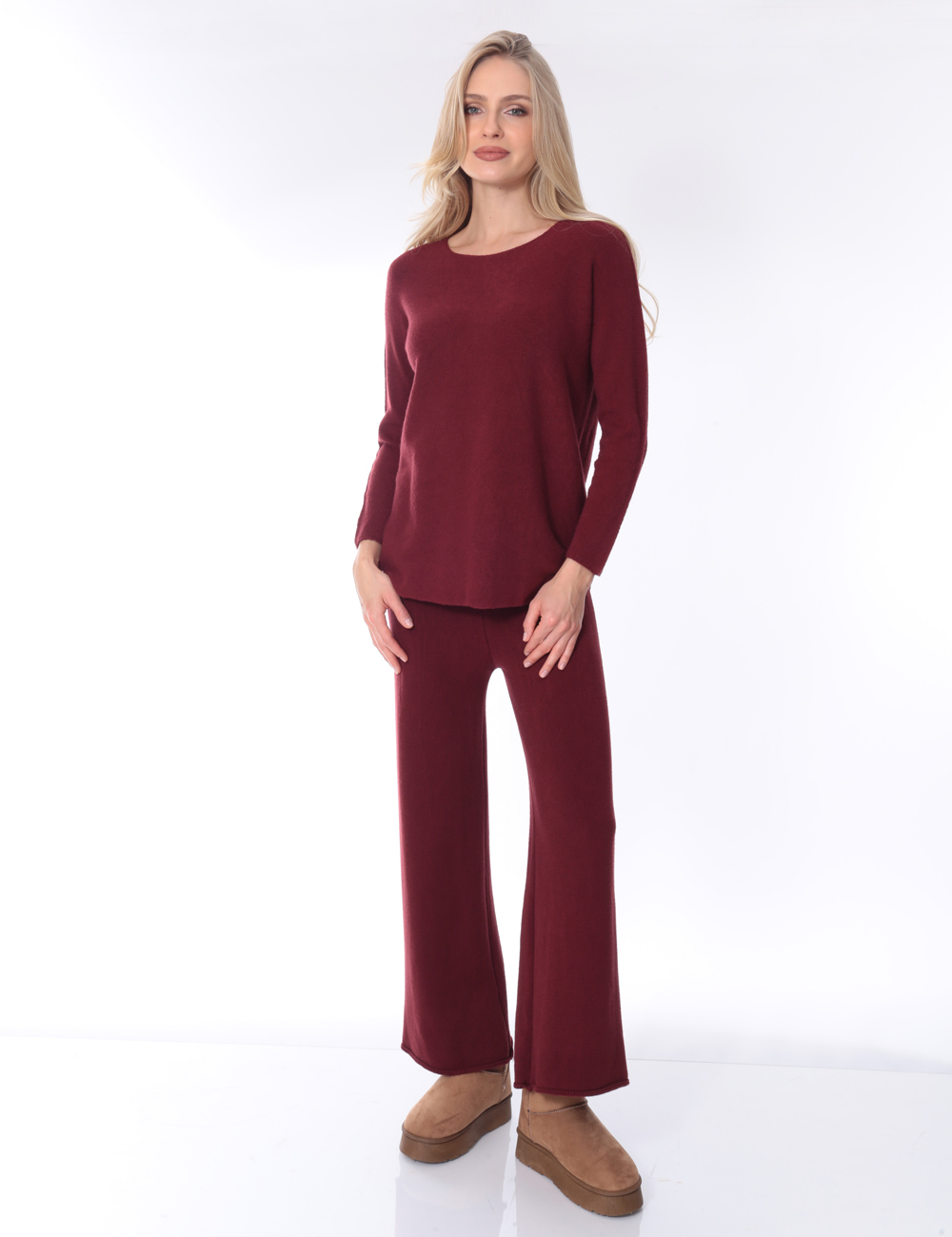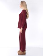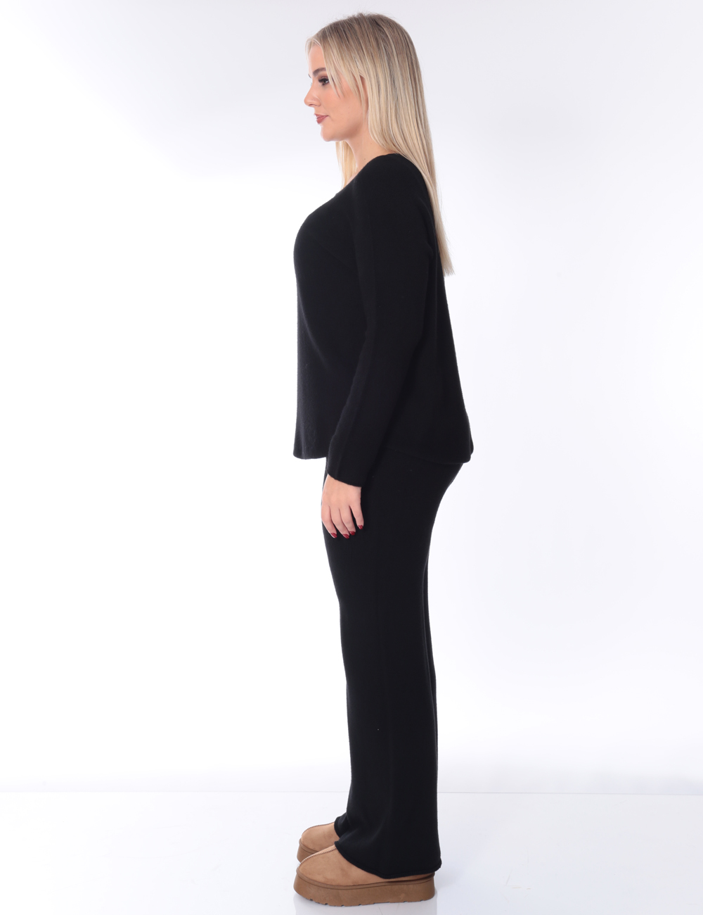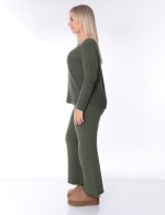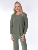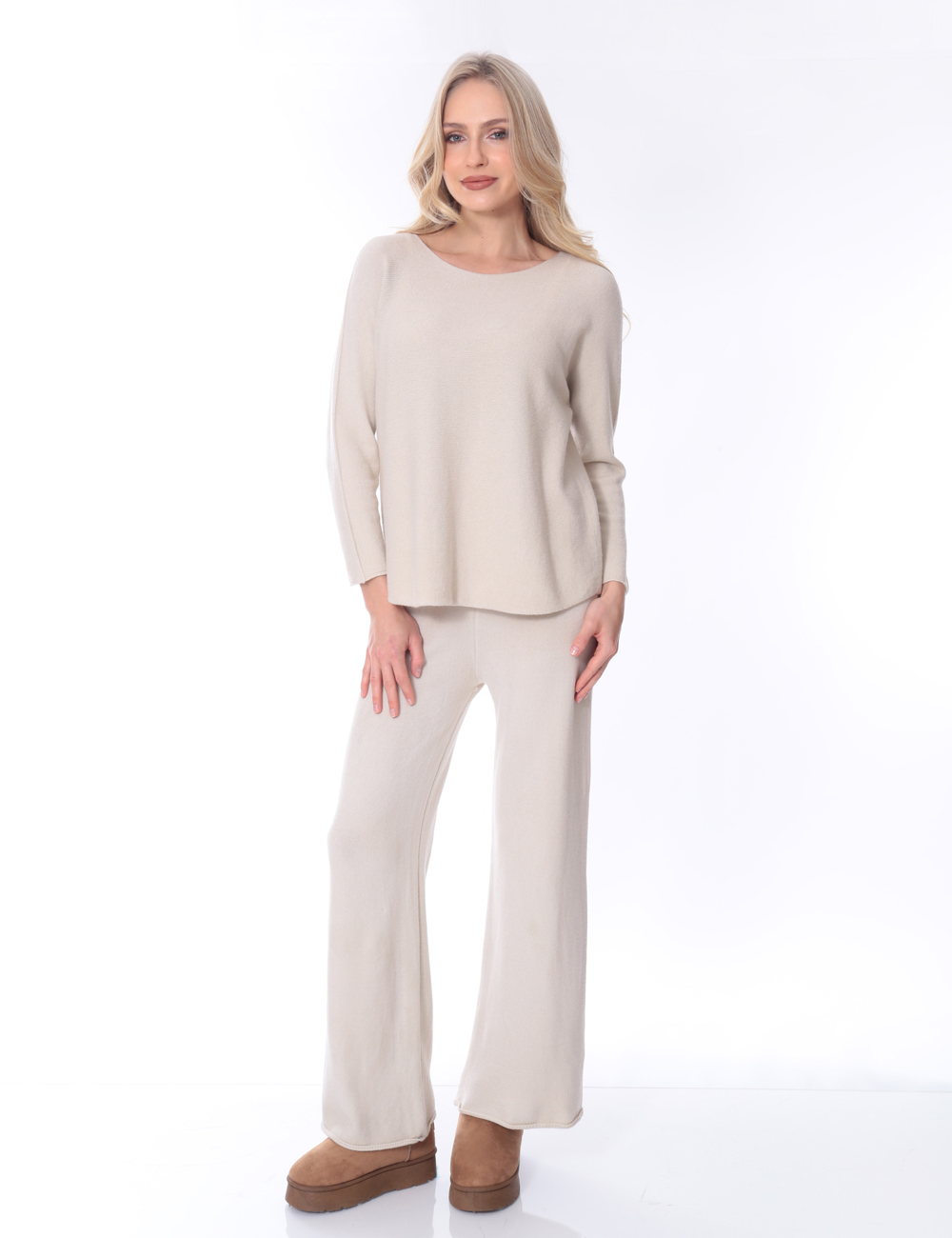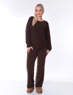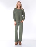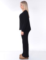 Πλεκτό σετ με μακριά μπλούζα και παντελόνι σε ίσια γραμμή. Διαθέτει μαλακή ύφανση με ελαστικότητα και απαλή υφή.