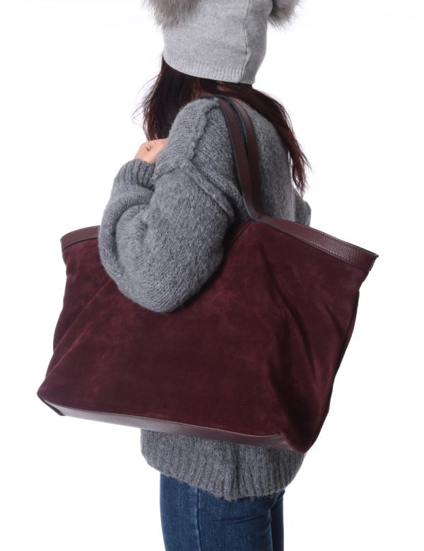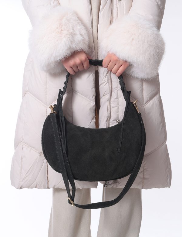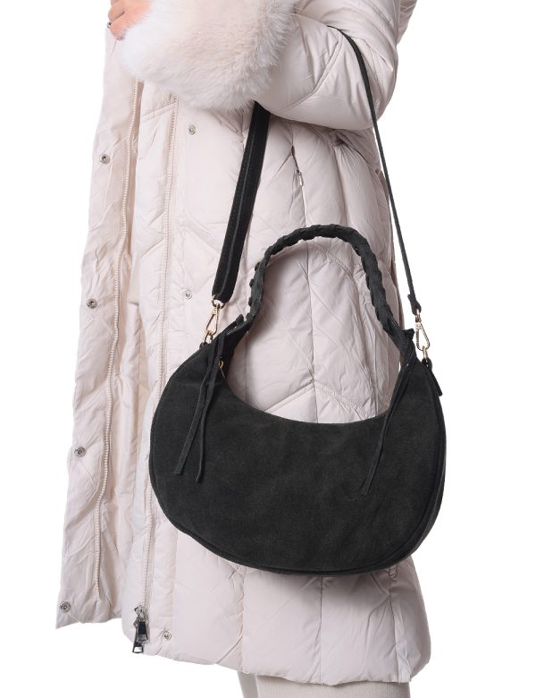 Τσάντα Δερμάτινη Suede με Μεταλλική Λαβή