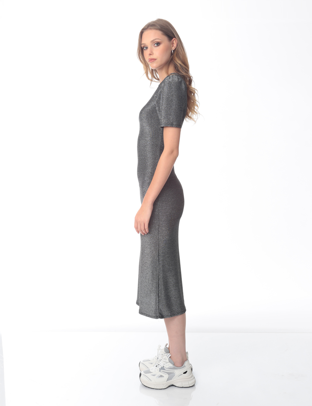 Φόρεμα Γυαλιστερό με Κοντό Μανικί